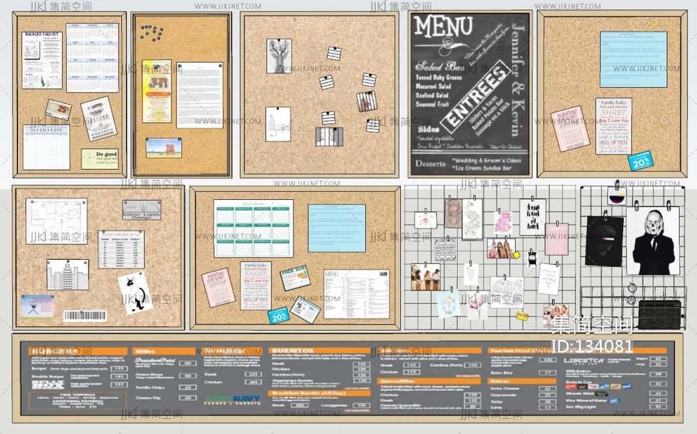 现代办公用品便签白板su模型 su草图模型下载 [模型ID:134081]