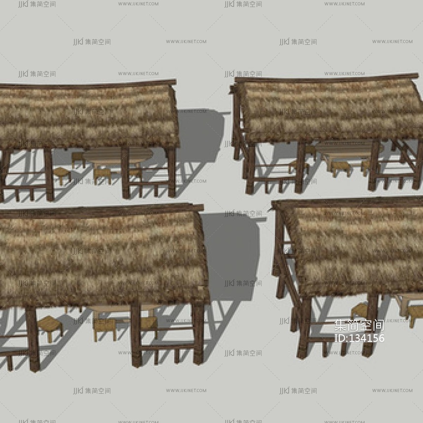 自然风户外茅草屋 木屋su模型 su草图模型下载 [模型ID:134156]