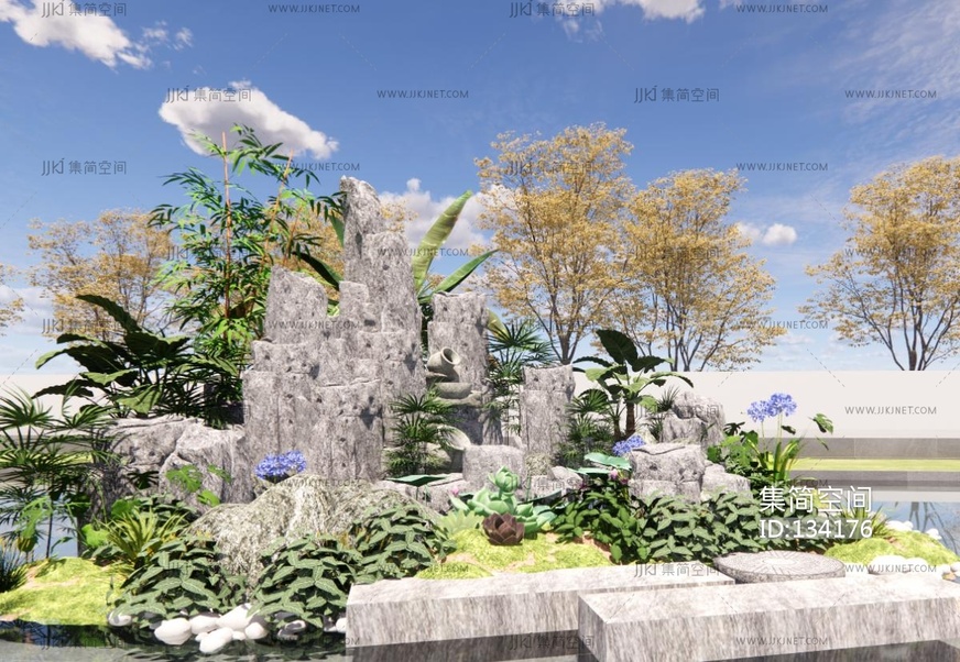 现代假山 石头 园林小品su模型 su草图模型下载 [模型ID:134176]