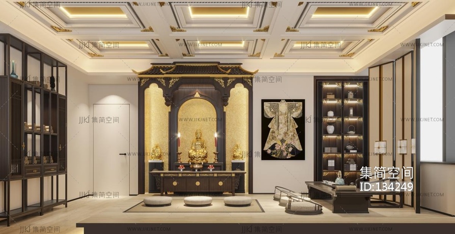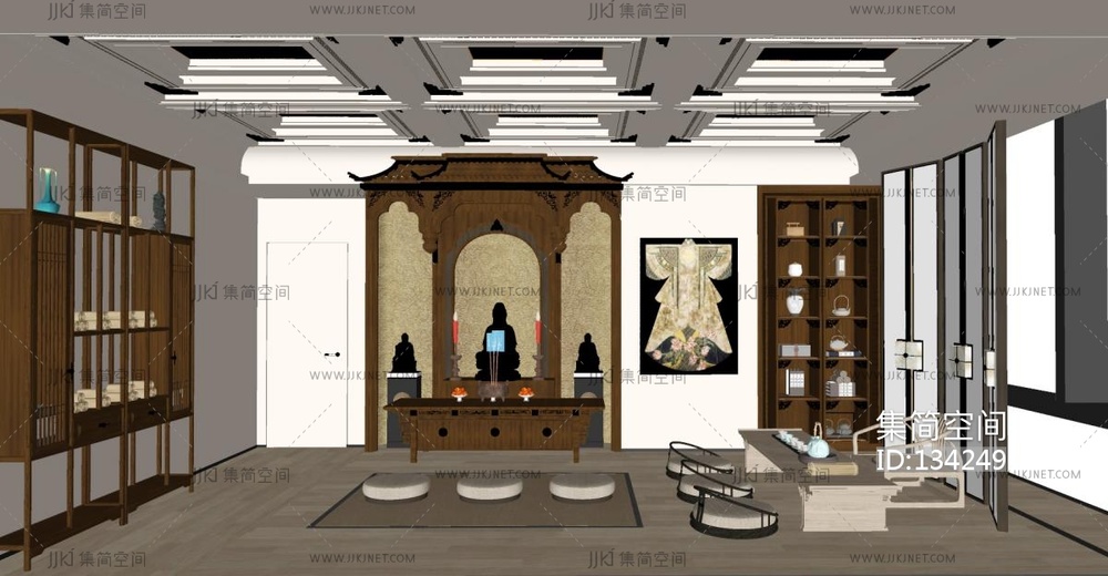 新中式佛堂su模型 、 su草图模型下载 [模型ID:134249]