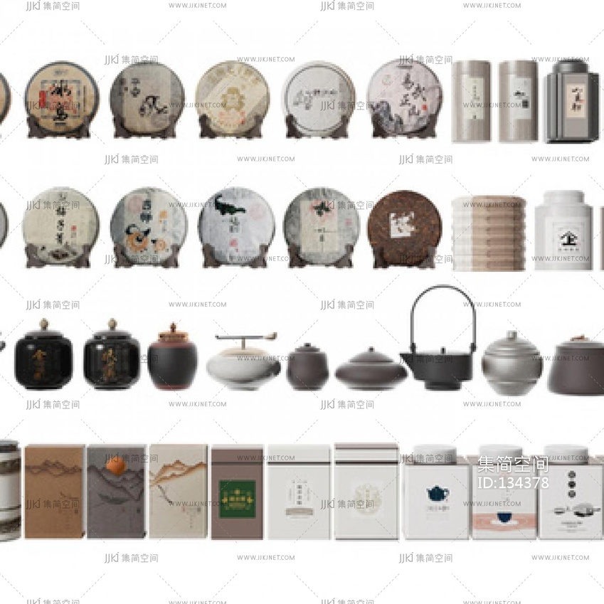 03-新中式茶具_茶叶_茶杯_茶饼_装饰柜_展示柜su模型su草图模型下载