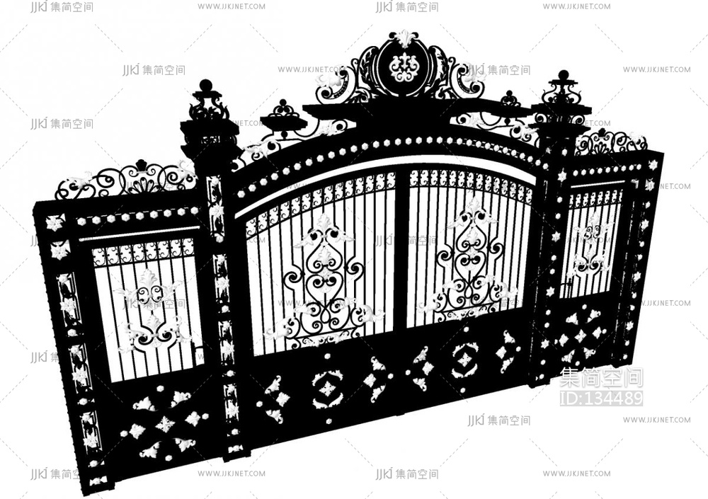 欧式铁艺庭院大门su模型 su草图模型下载 [模型ID:134489]