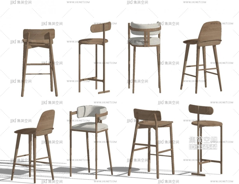 现代吧椅_吧台椅吧凳高脚凳_实木靠背吧台椅SU模型su草图模型下载