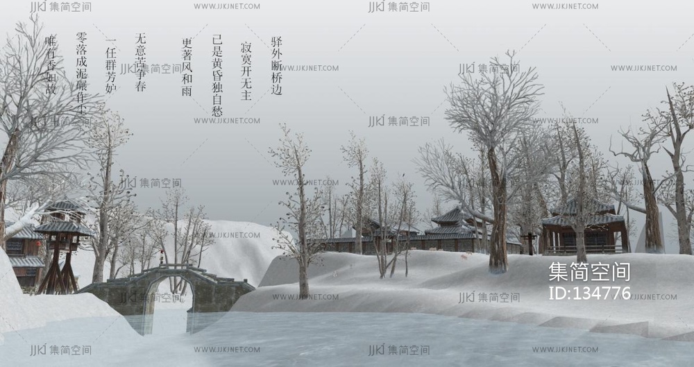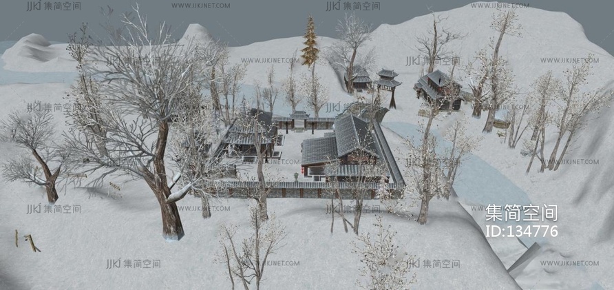中式四合院雪景su模型 su草图模型下载 [模型ID:134776]
