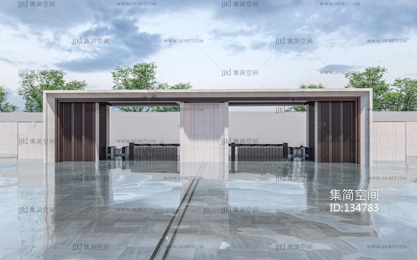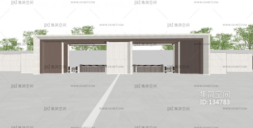新中式售楼处住宅入口,大门su模型 su草图模型下载 [模型ID:134783]