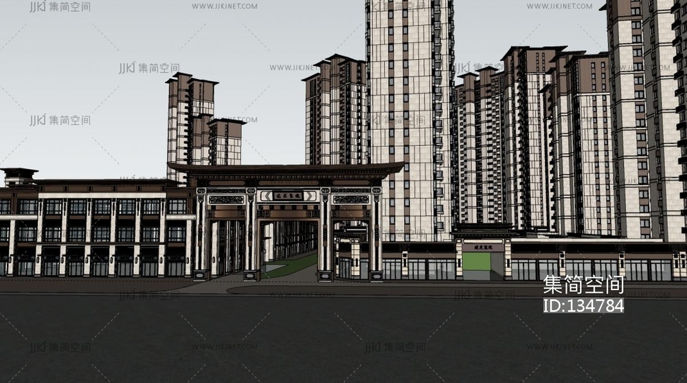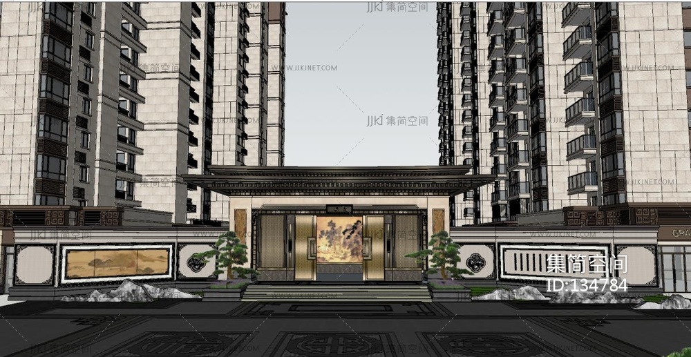 新中式高档住宅小区 su草图模型下载 [模型ID:134784]
