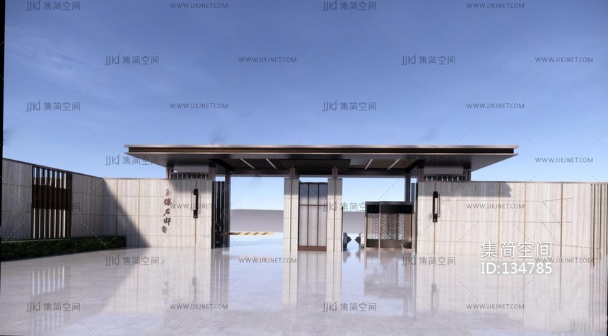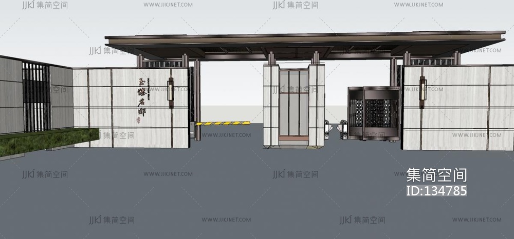 新中式住宅入口门头大门su模型 su草图模型下载 [模型ID:134785]