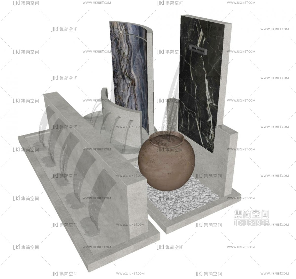 景观水景陶罐,,喷泉流水水幕su模型 su草图模型下载 [模型ID:134925]