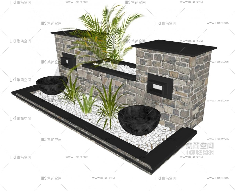 现代喷泉_现代景观叠水组合_流水喷泉_景观池绿植_水景喷泉_庭院跌水水帘SU模型su草图模型下载