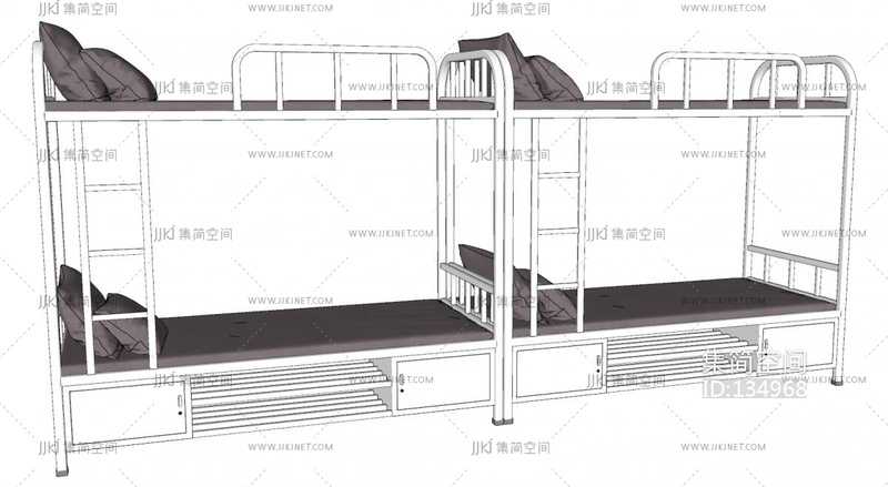 现代上下床 宿舍床su模型 su草图模型下载 [模型ID:134968]