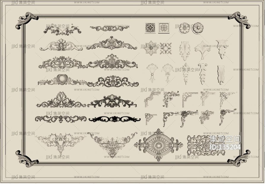 法式石膏雕花,石膏花线,角花su模型 su草图模型下载 [模型ID:135204]