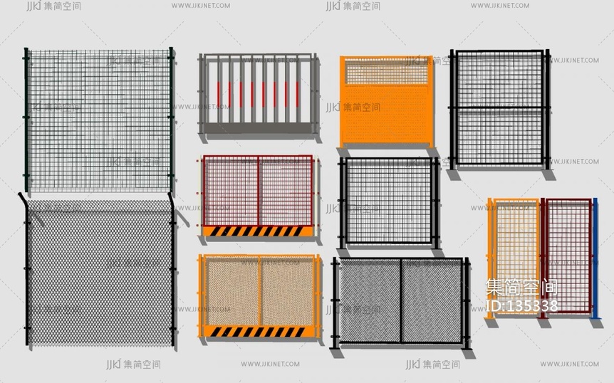 现代围栏护栏,铁丝网栏杆SU模型 su草图模型下载 [模型ID:135338]