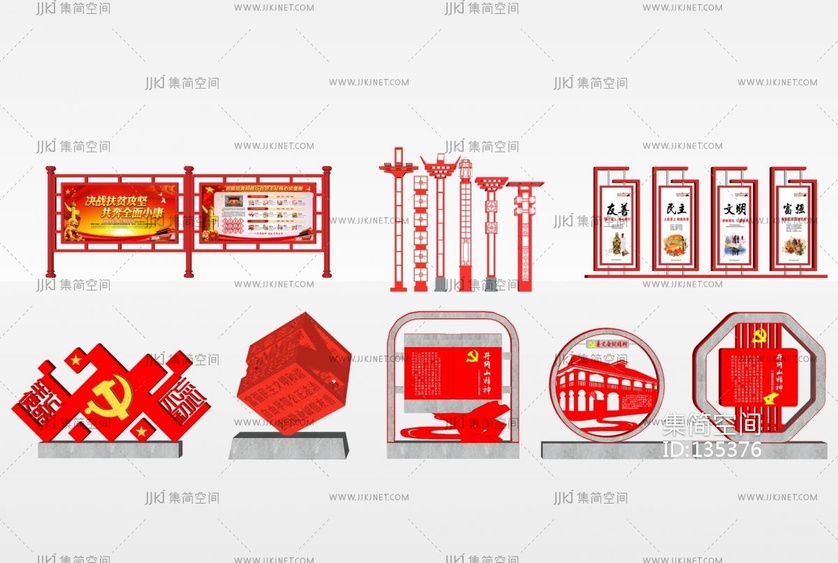 红色革命雕塑宣传栏 su草图模型下载 [模型ID:135376]