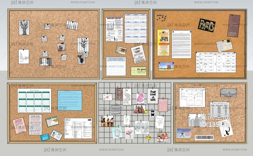 现代软木板 留言板 挂饰挂件便签su模型 su草图模型下载