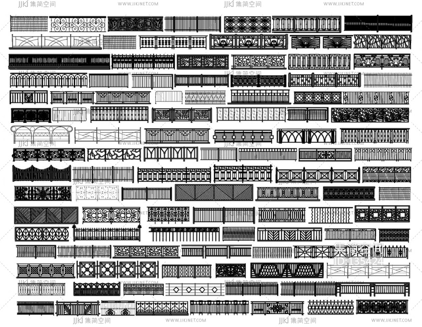 现代铁艺栏杆 围栏 围挡su模型 su草图模型下载 [模型ID:135424]