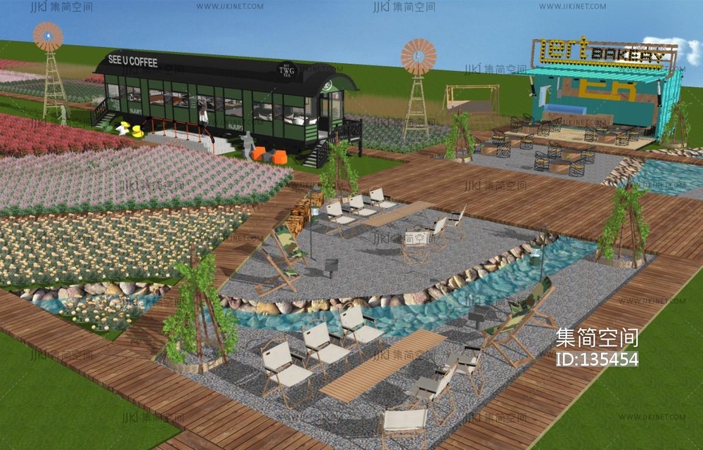 现代火车餐厅,乡村度假区SU模型 su草图模型下载 [模型ID:135454]