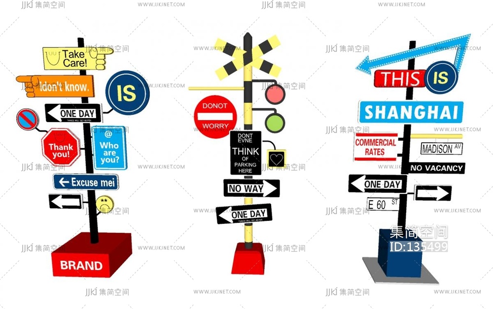 现代指示牌,餐饮招牌指示牌su模型 su草图模型下载 [模型ID:135499]