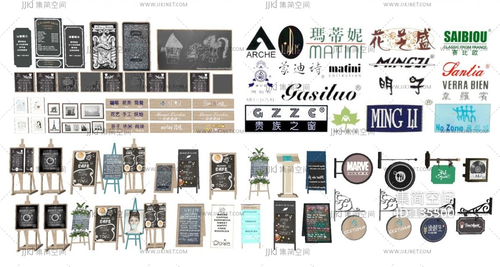现代广告牌_新中式乡村导视牌SU模型su草图模型下载