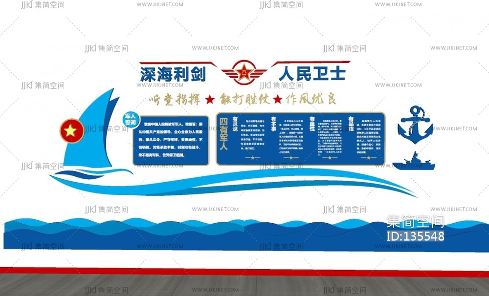 现代军队海军文化墙su模型 su草图模型下载 [模型ID:135548]