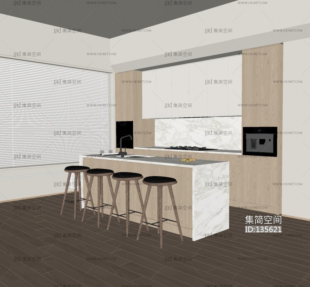 现代厨房,吧台su模型下载 su草图模型下载 [模型ID:135621]