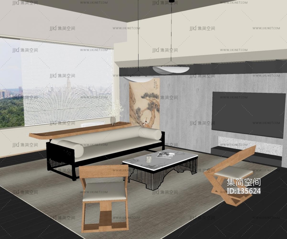 新中式沙发茶几su模型 su草图模型下载 [模型ID:135624]