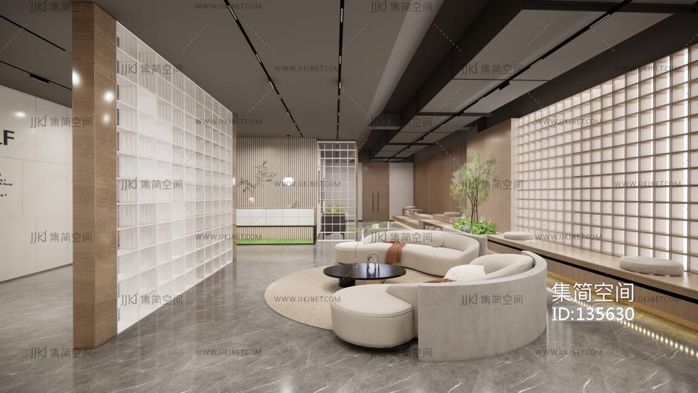 现代公共办公区SU模型su草图模型下载