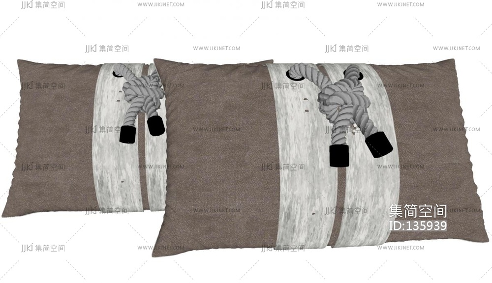 侘寂风原色花纹抱枕SU模型su草图模型下载