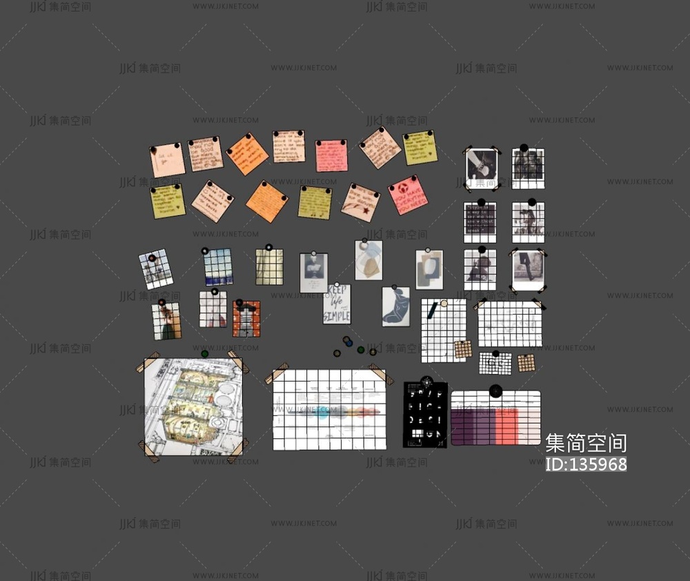 现代办公便签纸,照片墙,墙面装饰su模型 su草图模型下载 [模型ID:135968]