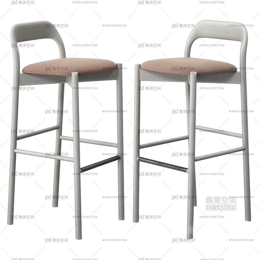 现代吧椅_吧台椅吧凳高脚凳_实木靠背吧台椅SU模型su草图模型下载