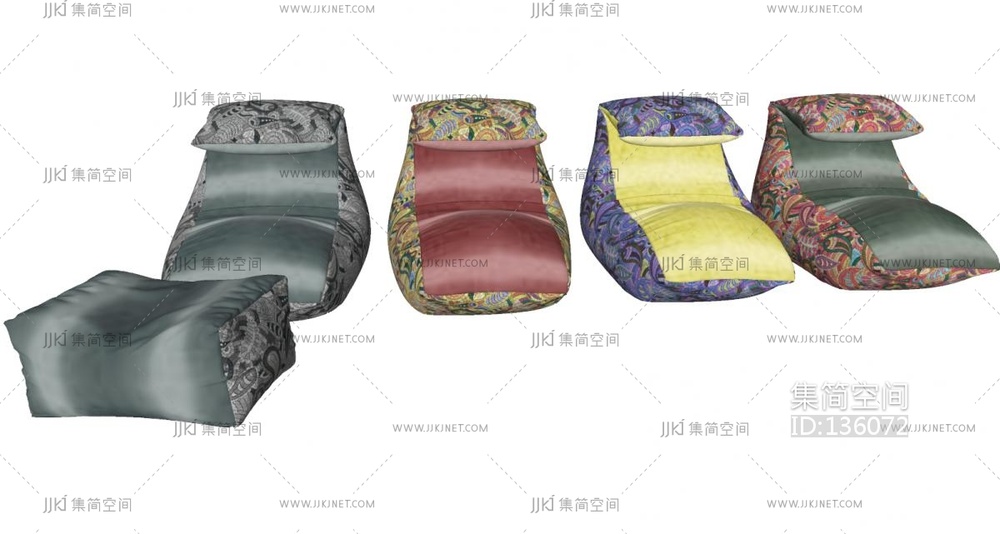 05现代懒人沙发_米灰色懒人沙发su模型su草图模型下载