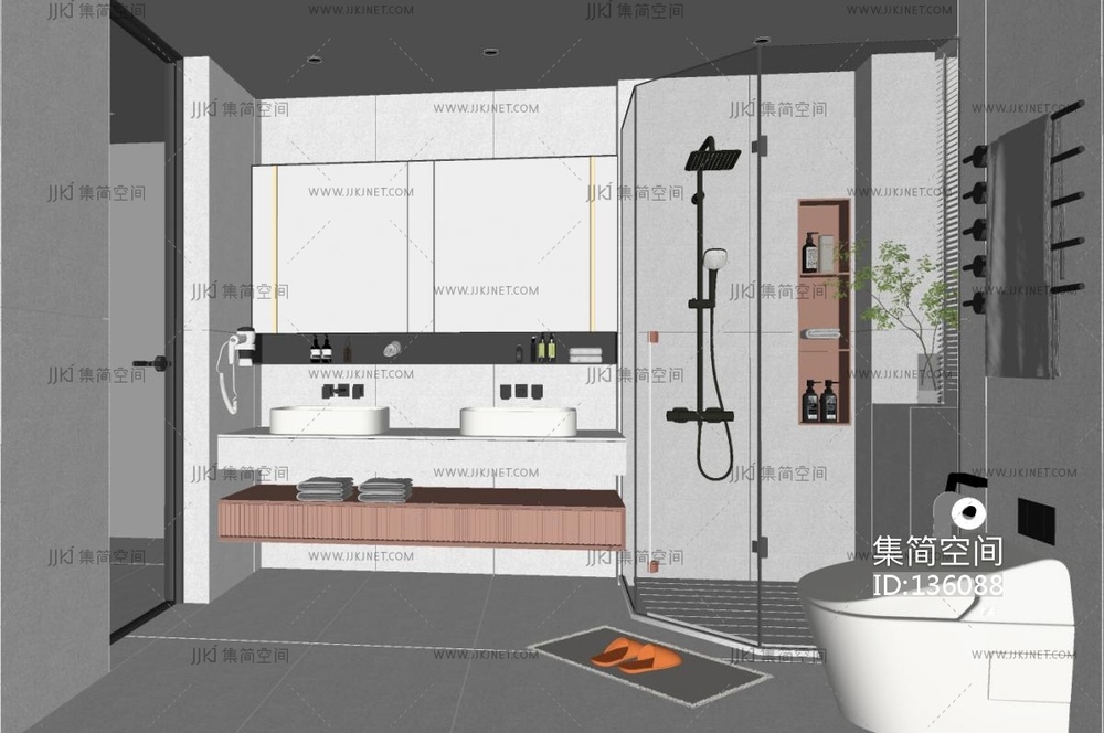现代卫生间su模型 su草图模型下载 [模型ID:136088]