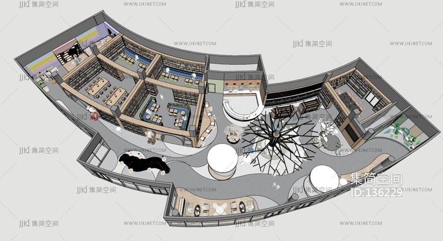现代书吧图书馆SU模型 su草图模型下载 [模型ID:136229]