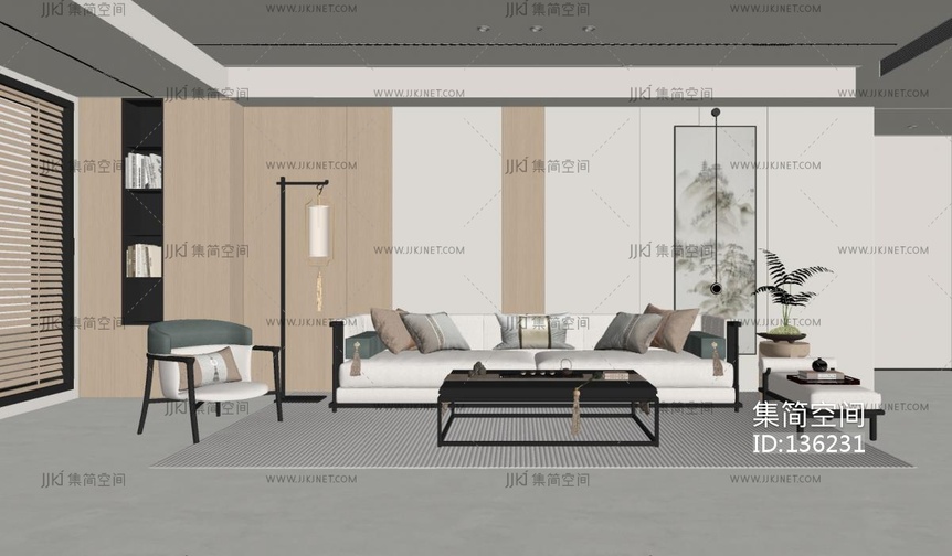 新中式禅意家居客厅SU模型 su草图模型下载 [模型ID:136231]