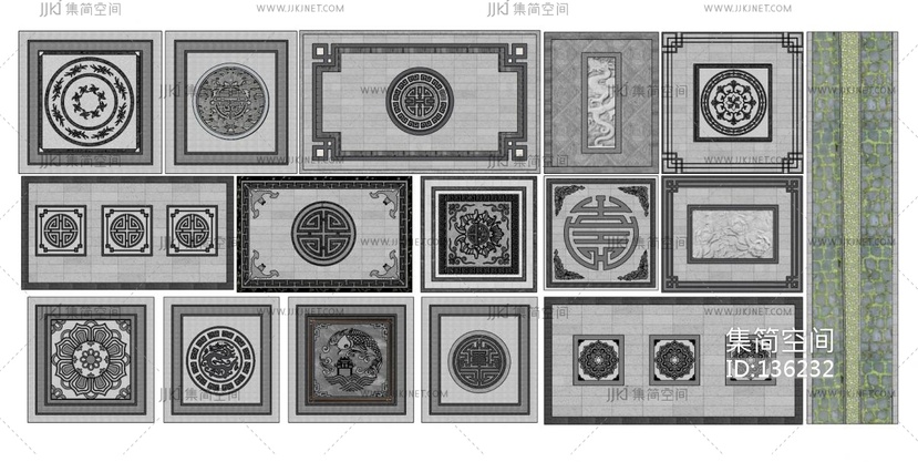 中式铺装,仿古砖SU模型 su草图模型下载 [模型ID:136232]