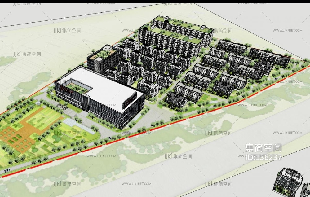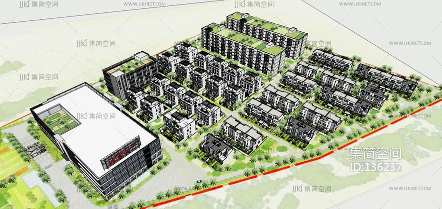 现代简模规划,城区建筑SU模型su草图模型下载