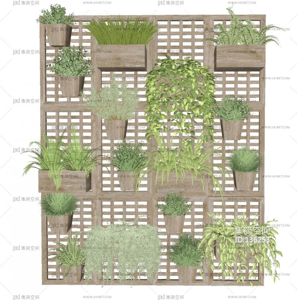 吊篮 盆栽 植物墙su模型 su草图模型下载 [模型ID:136253]