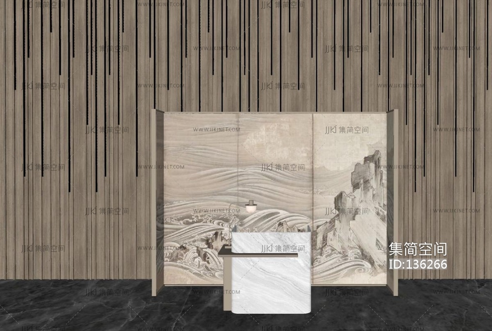 新中式前台接待台su模型 su草图模型下载 [模型ID:136266]