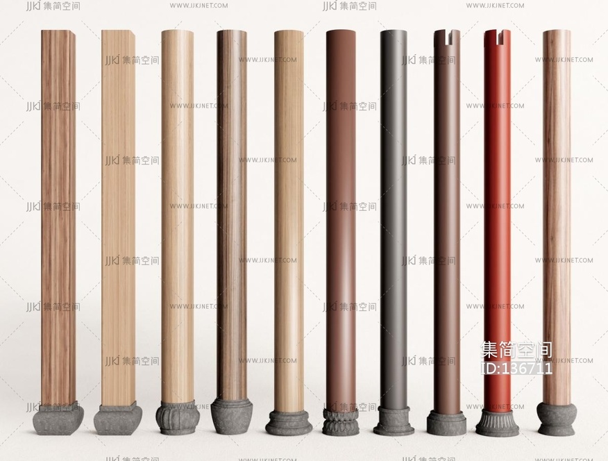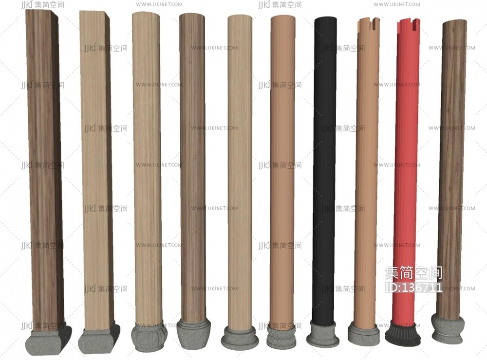 现代装饰柱_柱子中式柱子组合su模型su草图模型下载