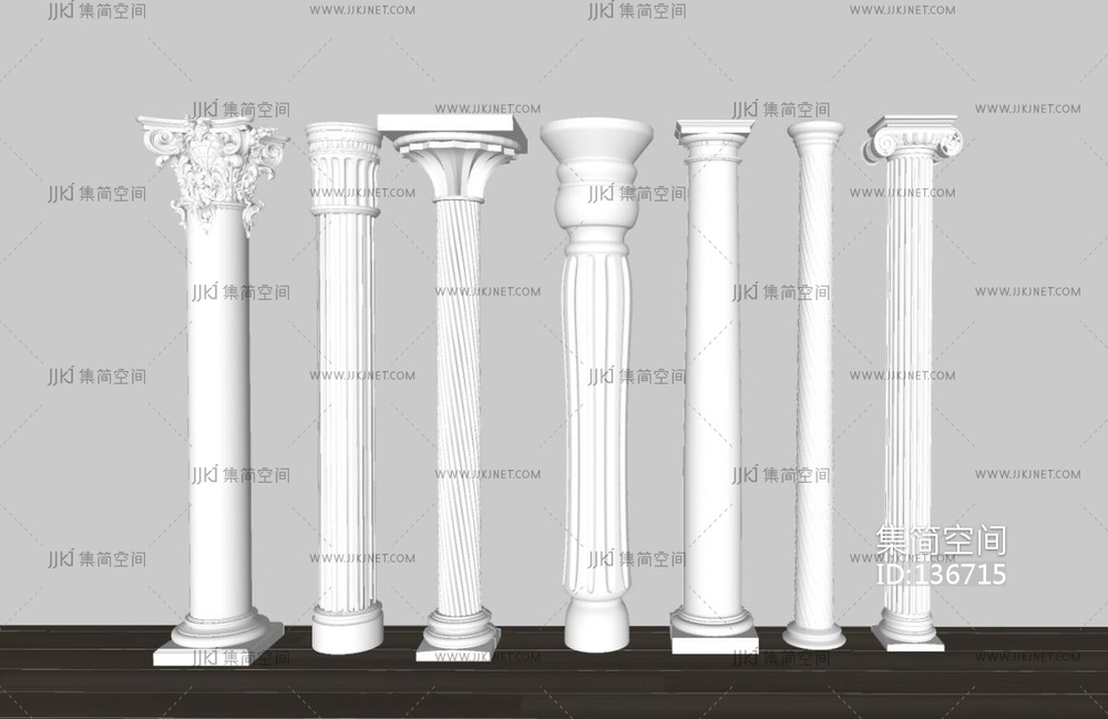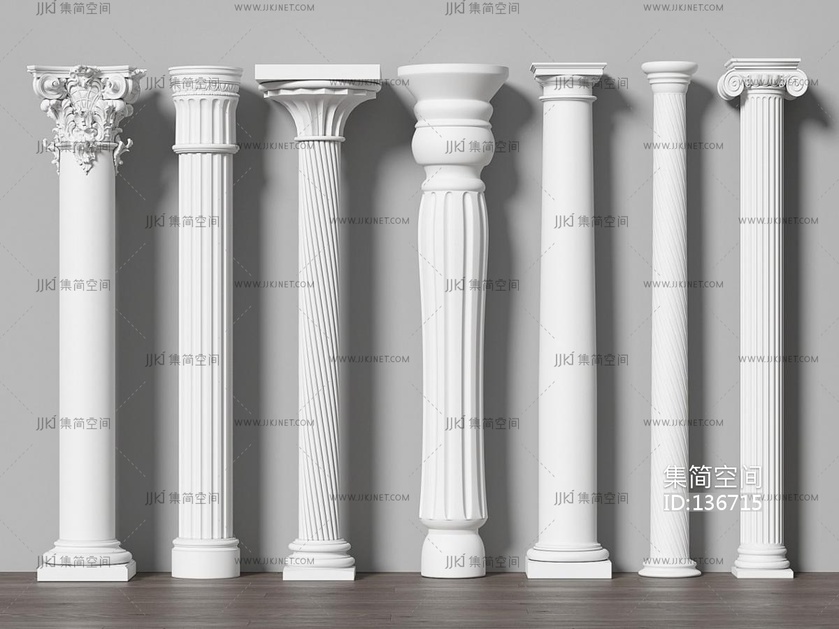 简欧欧式柱子组合su模型 su草图模型下载 [模型ID:136715]