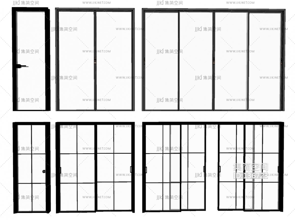 10-现代玻璃门组合_双开门_玻璃单开门_办公玻璃门_玻璃大门_玻璃推拉门_商业大门su模型su草图模型下载