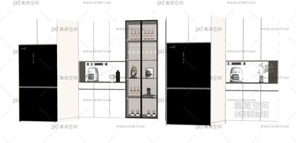 现代酒柜,冰箱橱柜su模型 su草图模型下载 [模型ID:136726]