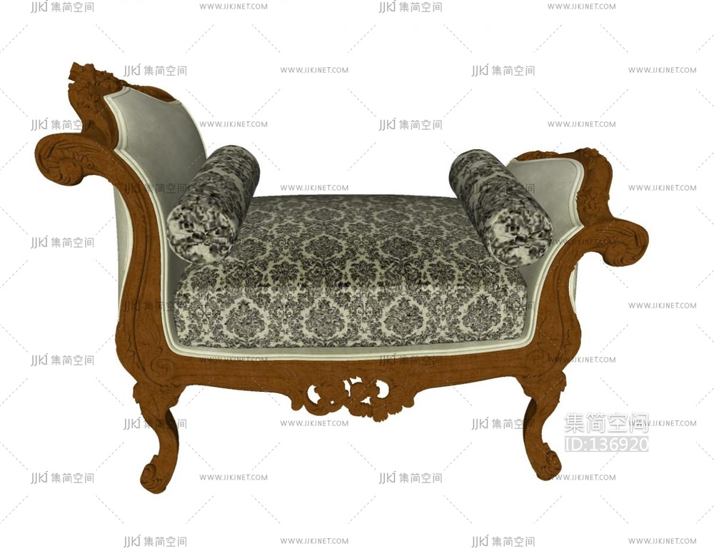 法式座凳凳子su模型 su草图模型下载 [模型ID:136920]