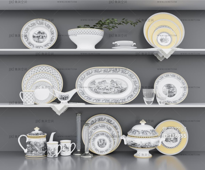 欧式厨房厨具餐具盘子水壶su模型 su草图模型下载 [模型ID:136955]