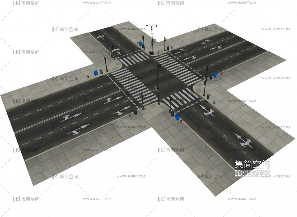 现代十字路口,信号灯,路灯su模型 su草图模型下载 [模型ID:137126]