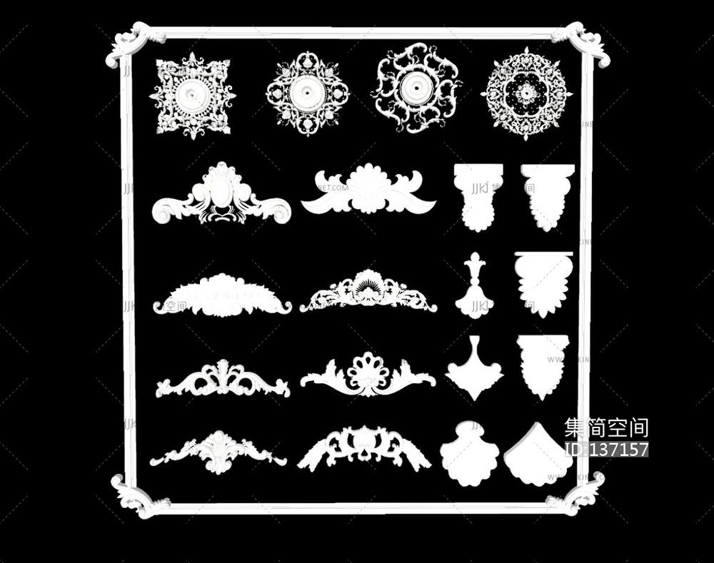 欧式法式古典雕花石膏线,角花,灯盘 su模型 su草图模型下载 [模型ID:137157]