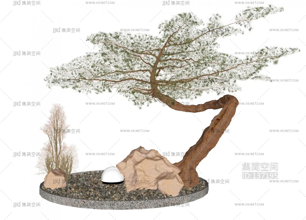 新中式景观绿植松树盆景迎客松su模型 su草图模型下载 [模型ID:137195]