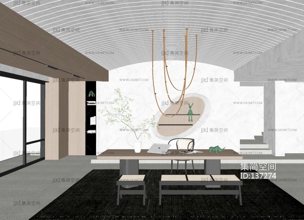 侘寂风书房su模型 su草图模型下载 [模型ID:137274]