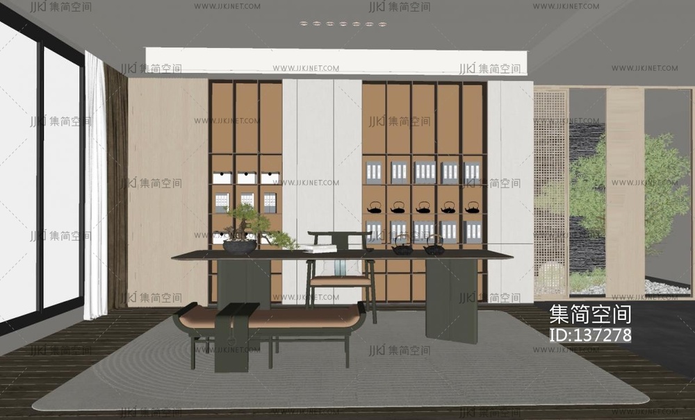 新中式书房su模型 su草图模型下载 [模型ID:137278]