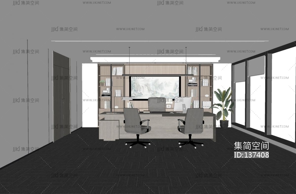 现代经理办公室su模型 su草图模型下载 [模型ID:137408]