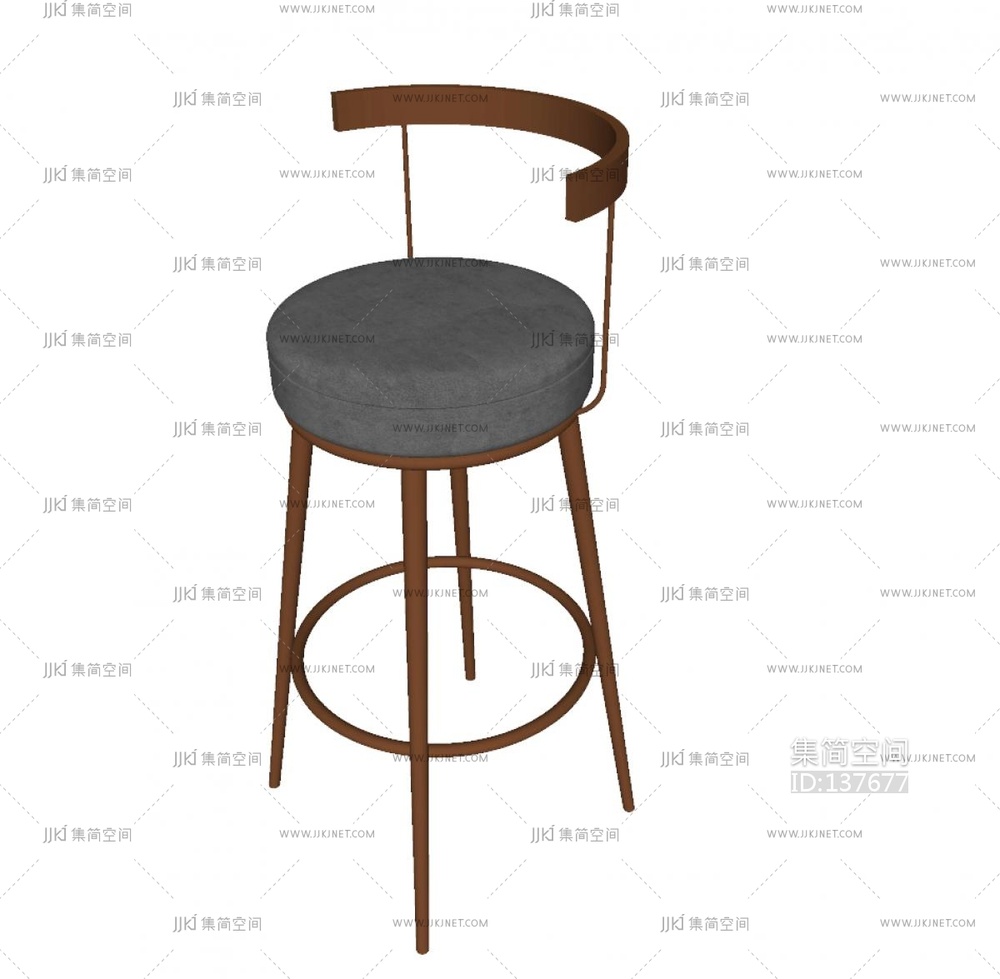 现代轻奢金属吧椅su模型 su草图模型下载 [模型ID:137677]